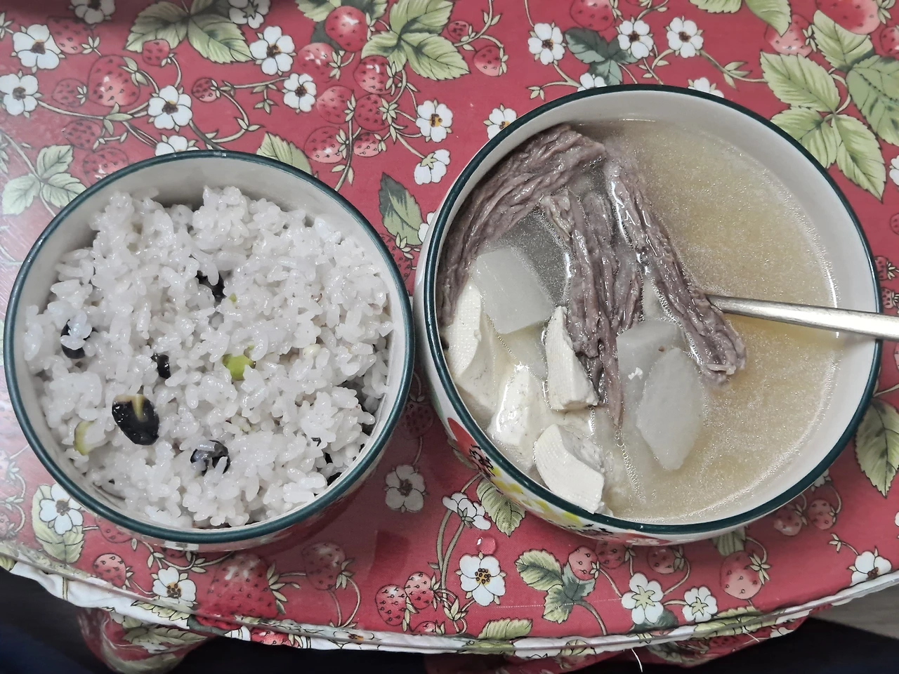 농사지은 하얀 쌀밥을 탕국에 말아 먹는다. 술술 넘어간다. 밥 한 톨 남지 않은 국그릇만 남는다.