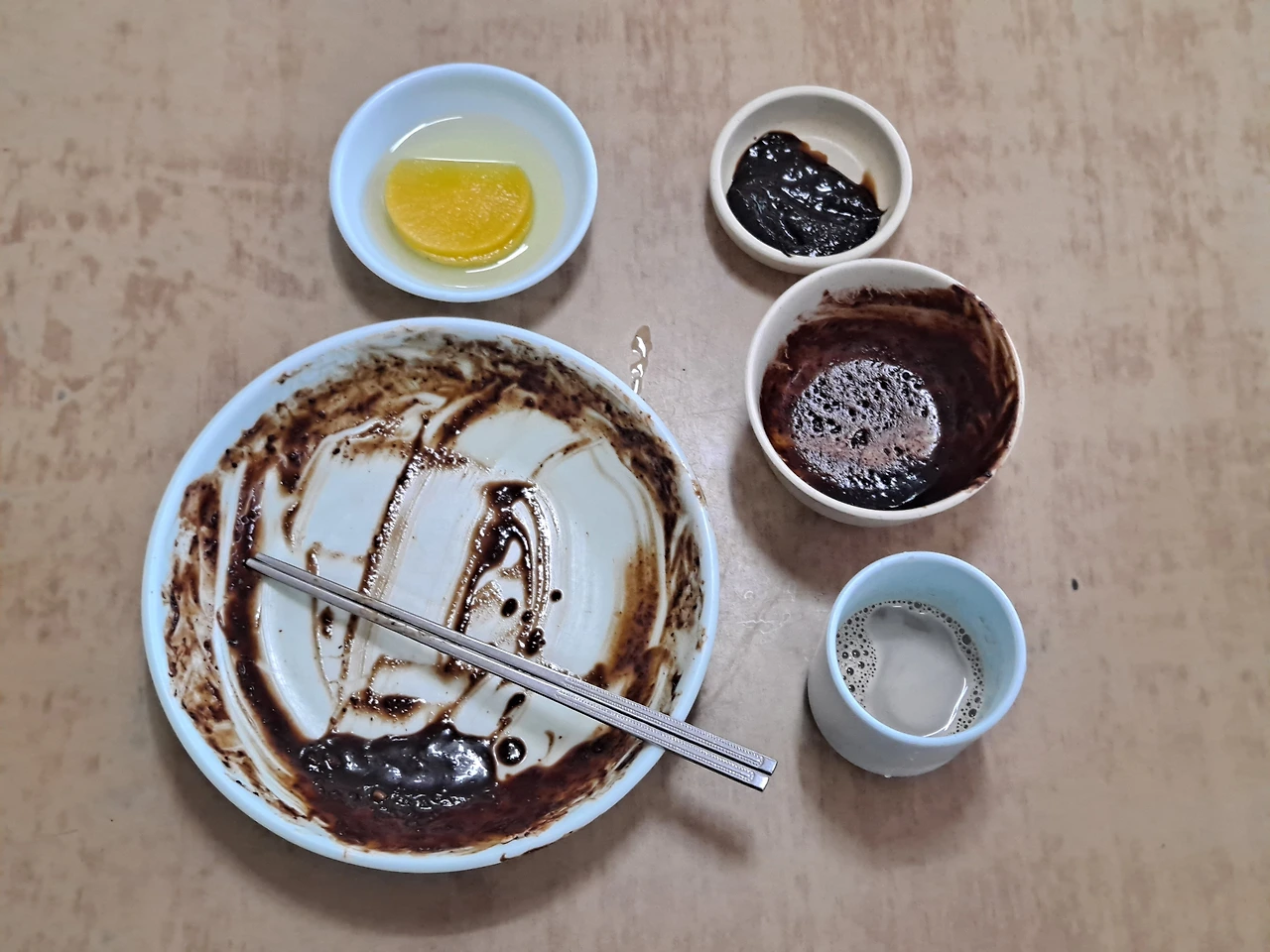 시나브로 하얀 그릇엔 검은 양념의 흔적만 남는다. 노랑 단무지로 흑을 핥는다. 백이 드러나도록. 아사삭 씹는다. 마지막 구수함의 여운이 혀에 은은하게 감돈다.