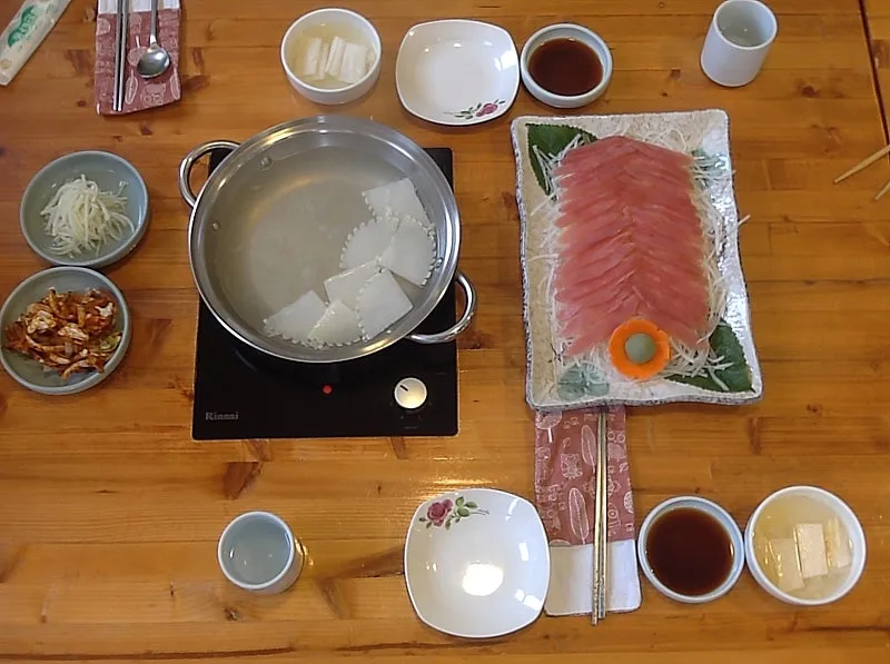 동치미 국물만 두어 번 들이킬 때쯤 꿩 회가 접시에 담겨 나온다. 말간 육수에 무를 썰어 넣은 넓적한 냄비도 전기 가열기에 얹어진다. 온도를 올려 육수를 끓인다.
