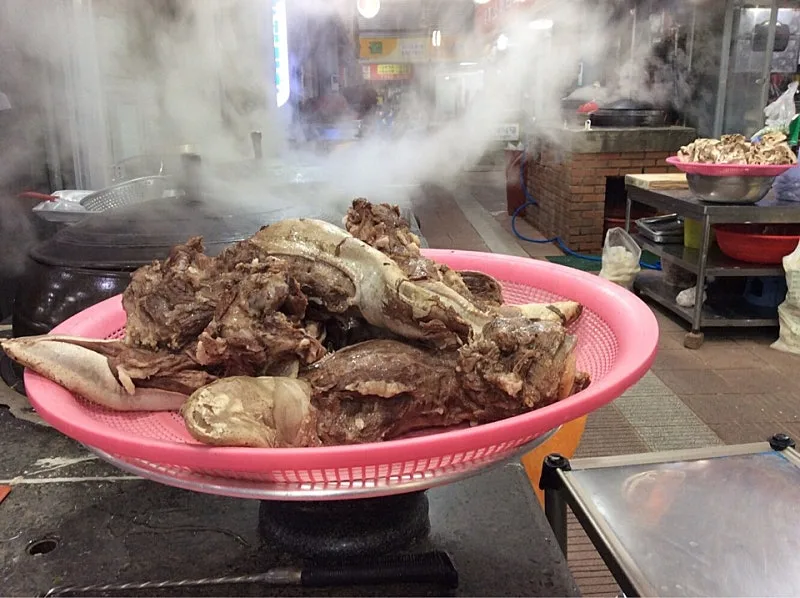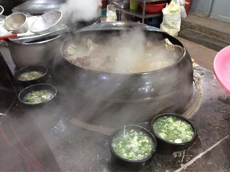 소뼈, 소머리 고기 등을 넣어 펄펄 끓이는 무쇠솥과 무쇠솥에서 막 건져낸 소머리 고기가 보인다. 하얀 김은 구수함을 실어 나그네의 후각을 자극한다. 침을 꼴깍 넘기고 식당 안으로 들어간다.