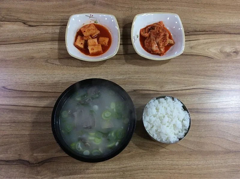김치와 깍두기도 곁들여 먹는다. 신맛, 시원 칼칼한 맛이 보태진다. 맛과 식감의 변주를 준다. 숟가락질이 이어질수록 푸짐한 소머리 속살과 밥은 나그네의 배를 든든하게 만든다.
