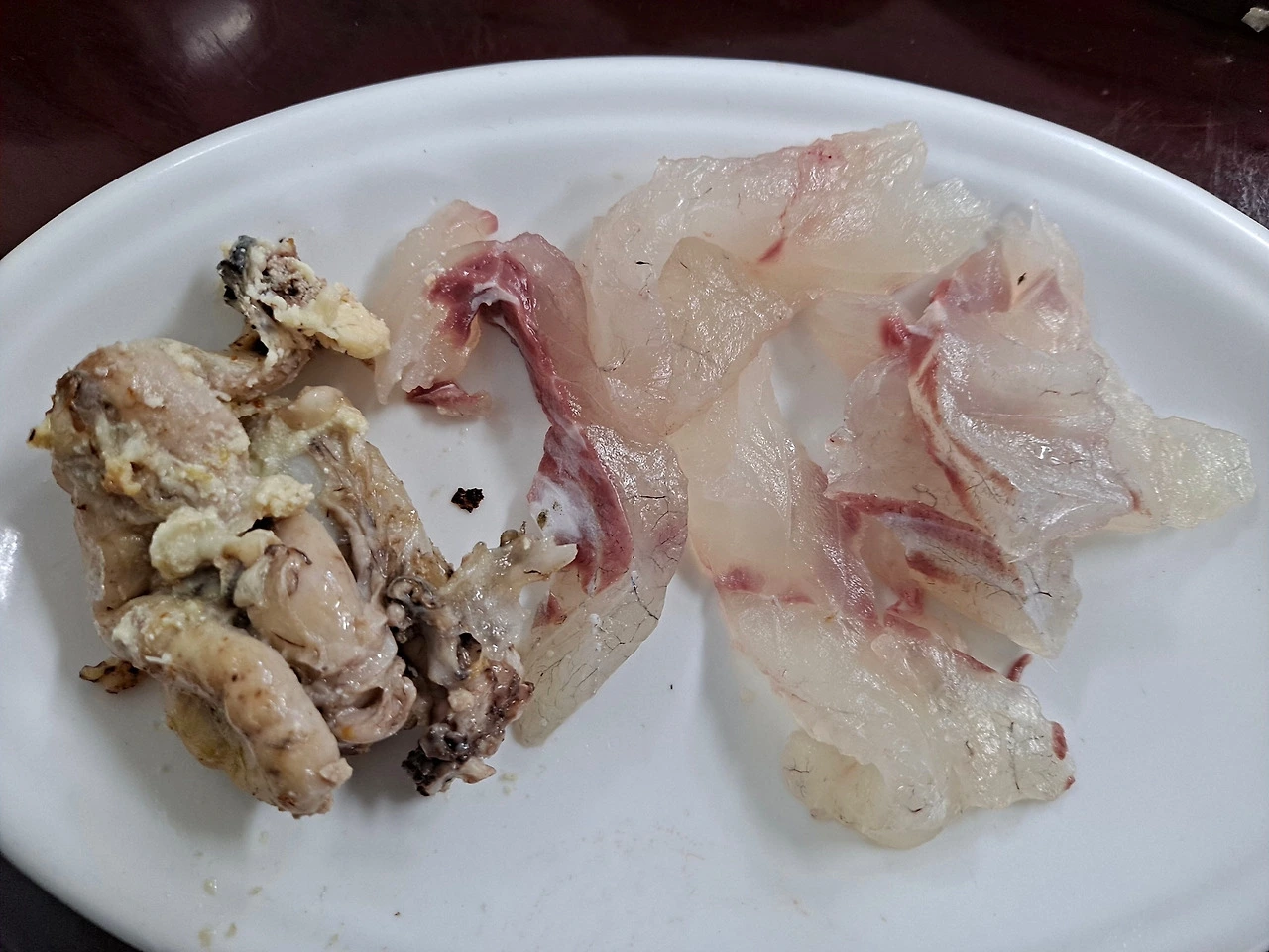 회를 길쭉하고 도톰하게 썰었는데 전문적인 솜씨가 아니어서 투박하다. 두세 점을 집어 맛을 본다. 졸깃하고 탄력적인 식감과 달금함이 입안에 가득 찬다. 노련하지 않은 칼질 솜씨지만 한 점씩 정성껏 써신 여사장님의 수고와 남도 앞바다의 신선함이 곁들여진 참돔회다.