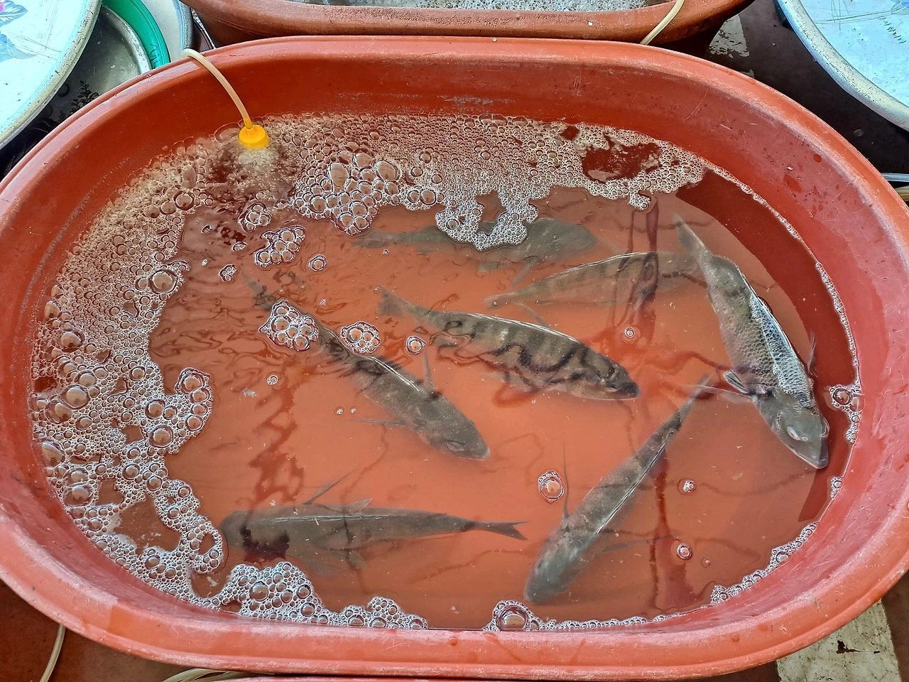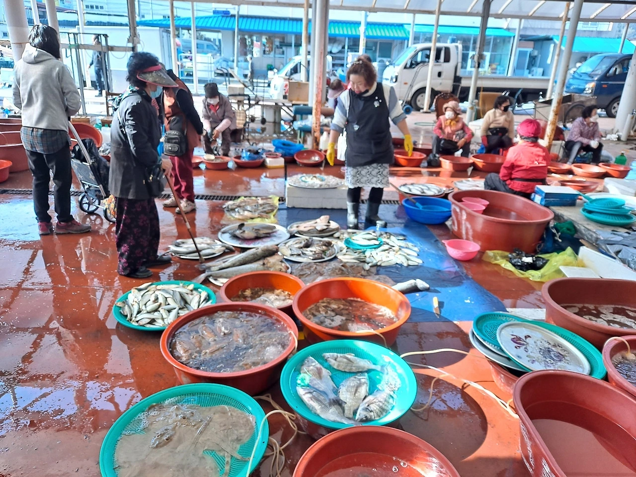 2일, 7일 진도 장날은 조금시장에서 영업을 한다. 전날 남사장님께 미리 들어 알게 됐다. 여사장님과 가볍게 안부를 묻고 참돔을 산다. 봄 전어 맛보라며 두마리를 덤으로 주었다.