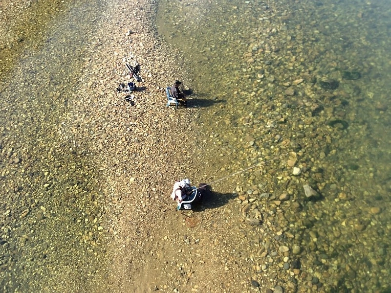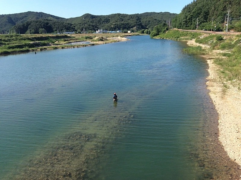 성류굴 앞 왕피천에서 은어 낚시 하는 모습이다. 잡은 은어중 일부는 성류굴 부근 식당으로 보내진다.