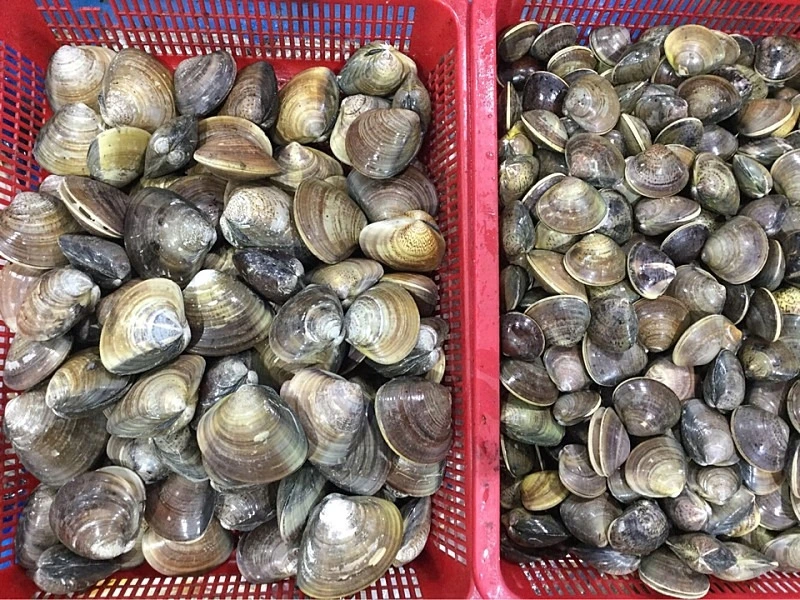 부안 부안상설시장 보람이네수산에서 생합이라 부르는 백합을 구입한다.