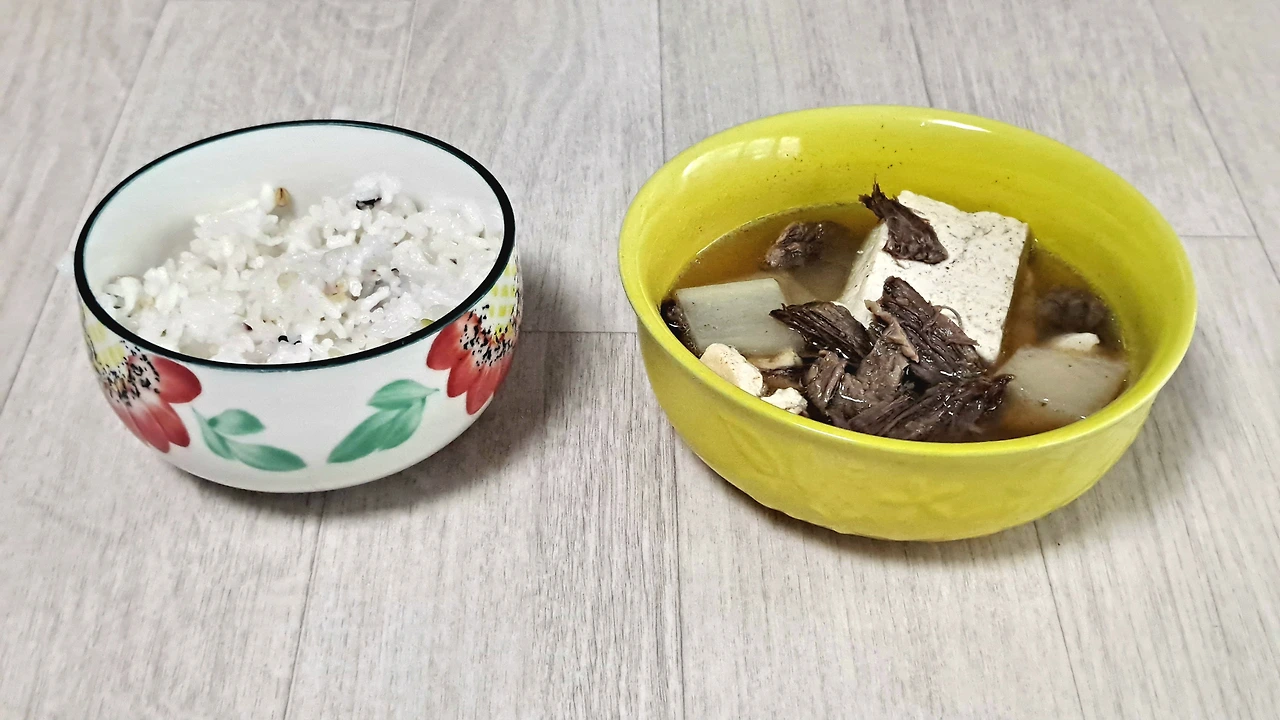 하얀 쌀밥을 탕국에 말아 먹는다. 술술 넘어간다. 밥 한 톨 남지 않은 국그릇만 남는다.