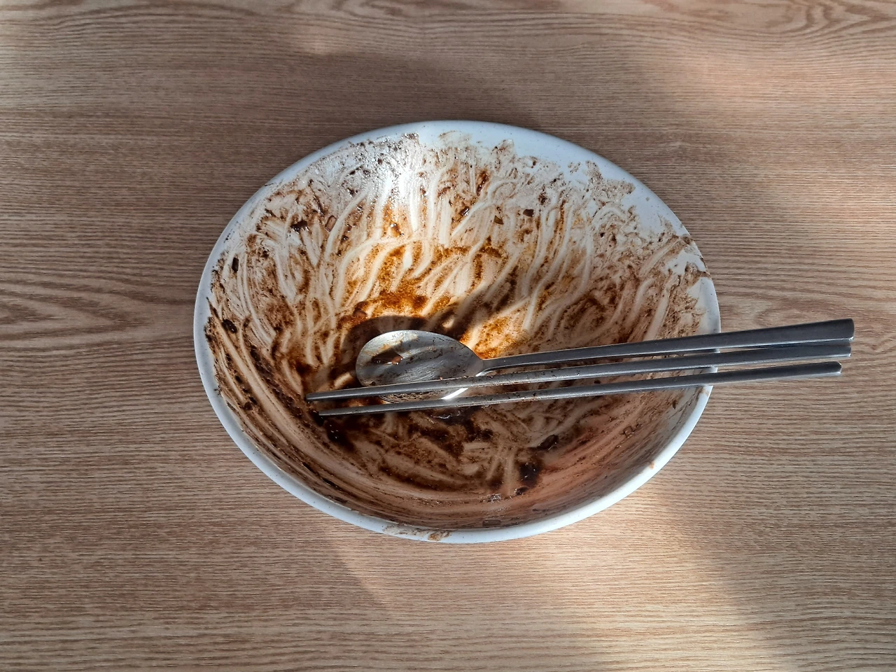 시나브로 그릇과 입가 주변엔 검은 양념의 흔적만 남는다. 잠시 수저가 남은 빈 그릇을 보며 간짜장을 만들던 과정과 먹는 과정을 되짚어본다.
