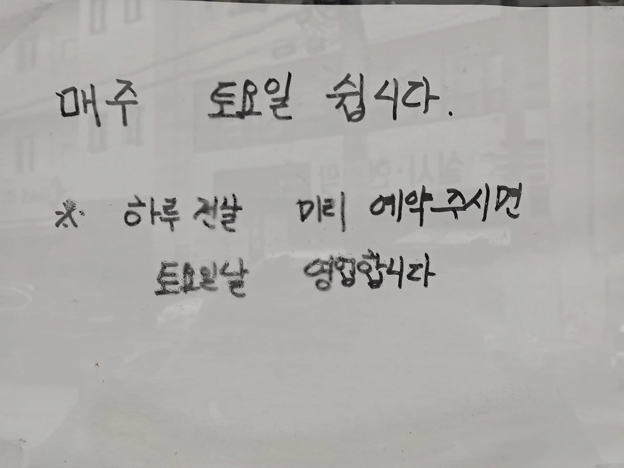 "밖에 붙은 종이에 토요일에 쉬신다고 해서요?"