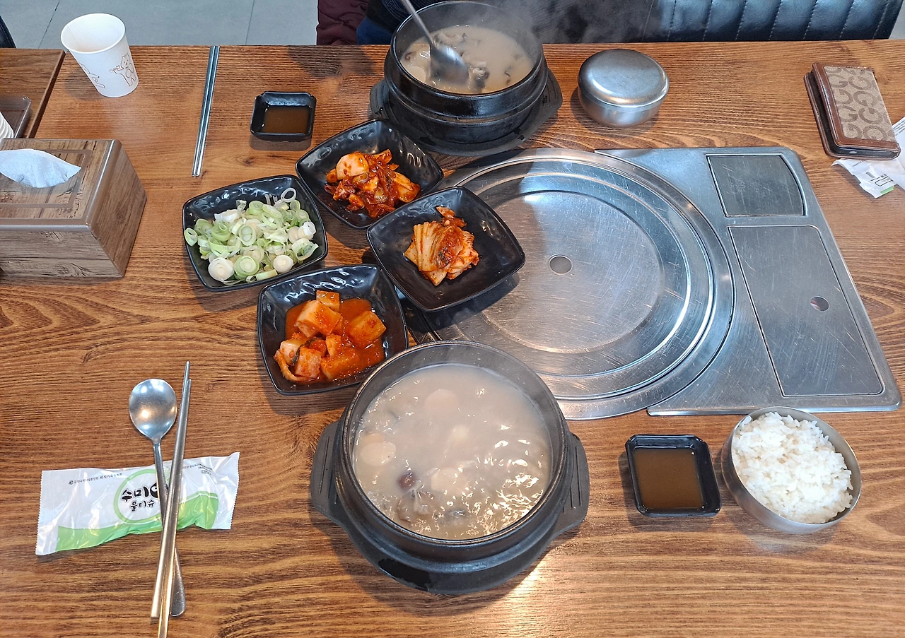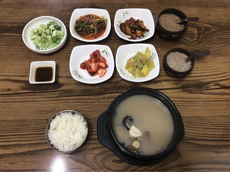 시인님과 오손도손 얘기를 나누는 사이 양삼탕 집 대표 음식인 한방 양삼탕 밥상이 식탁에 차려진다.