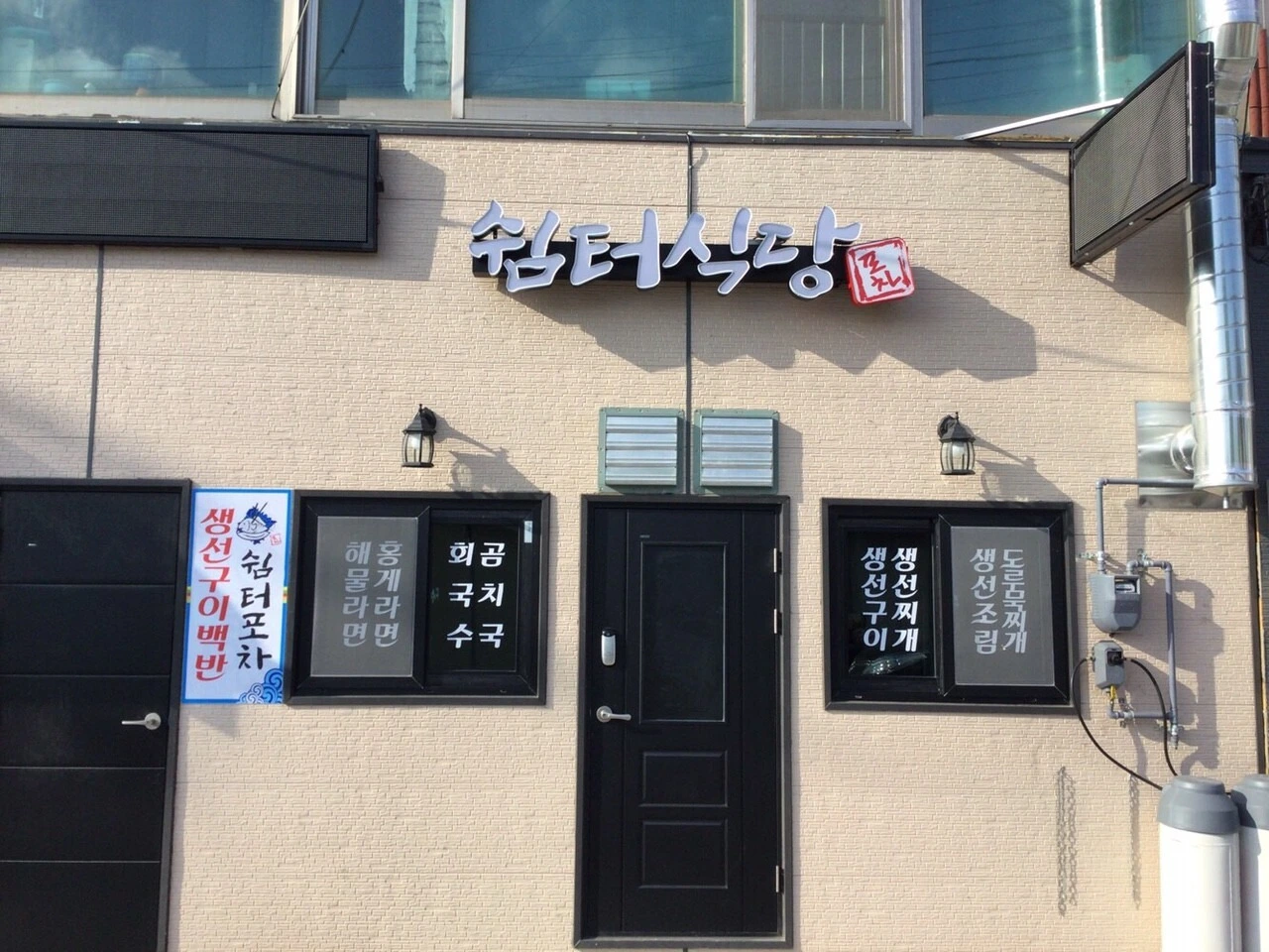 쉼터식당은 고성군 거진파출소 뒤편에 있는 작은 건물이다. 첫 방문시 맛본 생선구이 기억이 좋아 다시 찾았다.