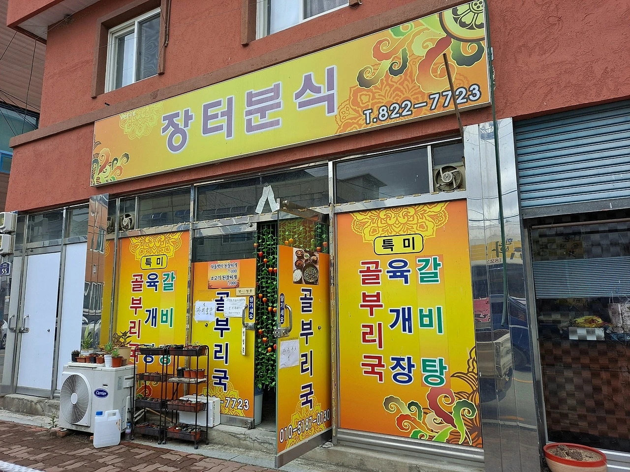 장터분식은 안동 길안면 길안새마을금고 옆에 있다. 작은 테이블 4개뿐인 작은 식당이지만 내부가 깔끔하다. 상냥하신 여사장님이 운영한다.