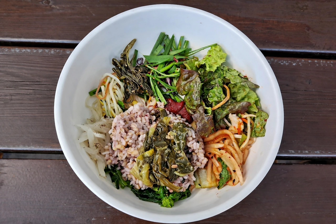 고추장과 채소가 담긴 비빔 그릇,