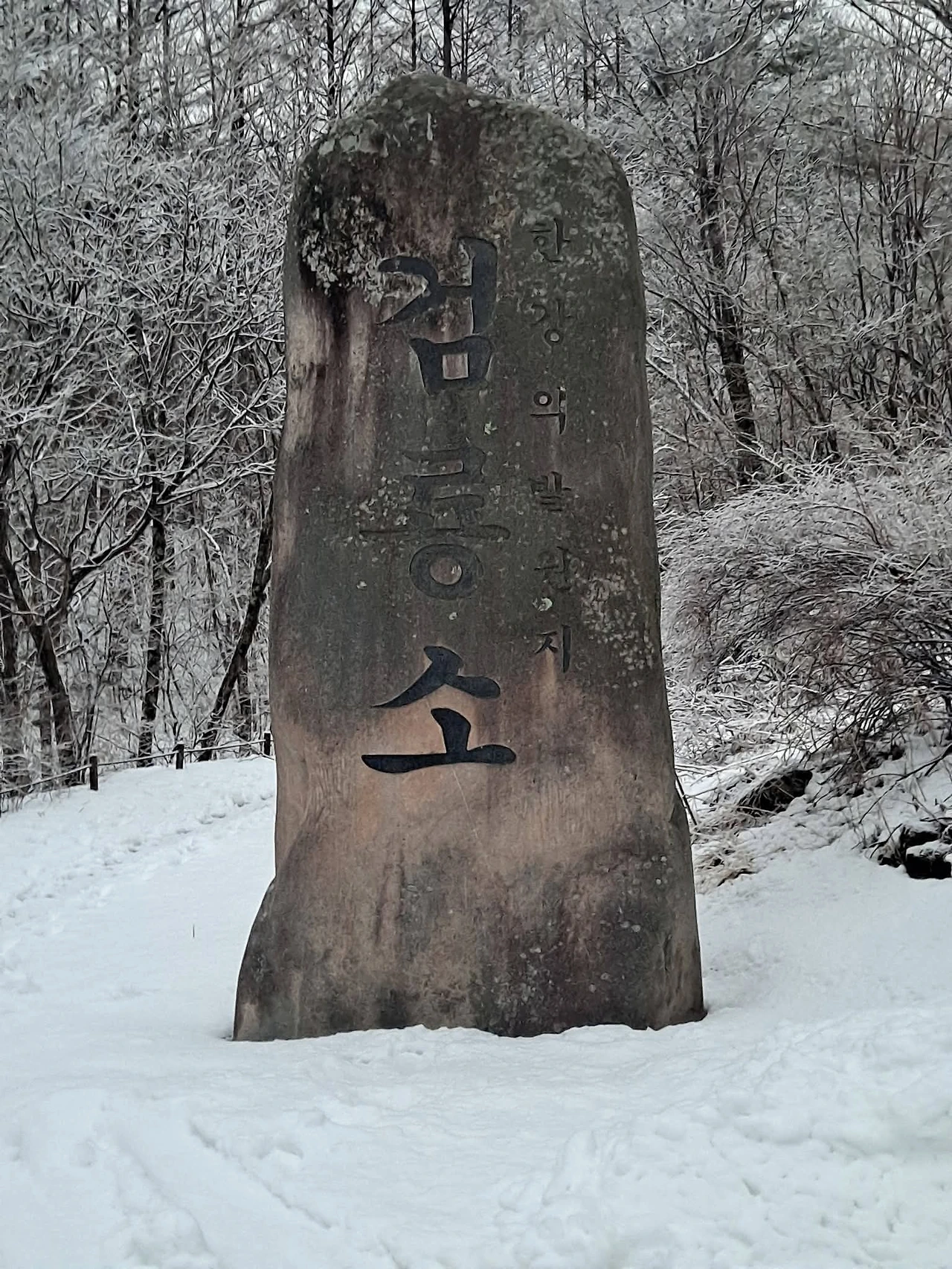 눈 내린 숲길을 따라 검룡소로 천천히 걸음을 옮긴다.