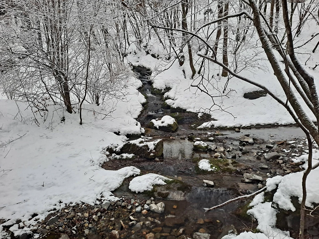 눈길은 사람 한 명 지나갈 만큼만 치워져 있다. 차가운 바람이 얼굴을 스치고, 걸음을 옮길 때마다 발자국이 눈 위에 ‘보드득’ 소리를 남긴다.