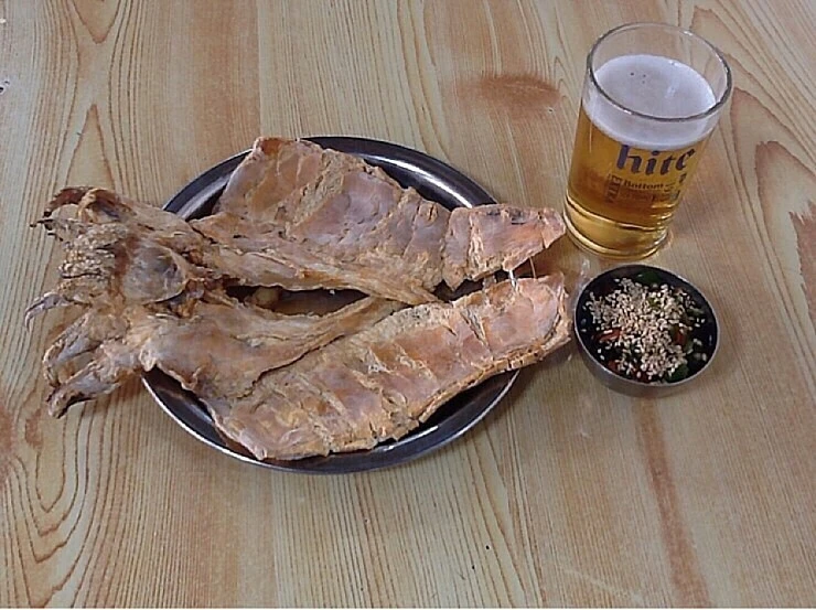 황태구이는 겉은 바스라질정도로 바삭하고 속은 포실포실 하다. 달고 짜고 고소하고 감칠맛 나는 양념에 찍어 시원한 맥주 한잔 들이킨다. 뜨내기 여행객의 피로를 풀어주는 영양제다.