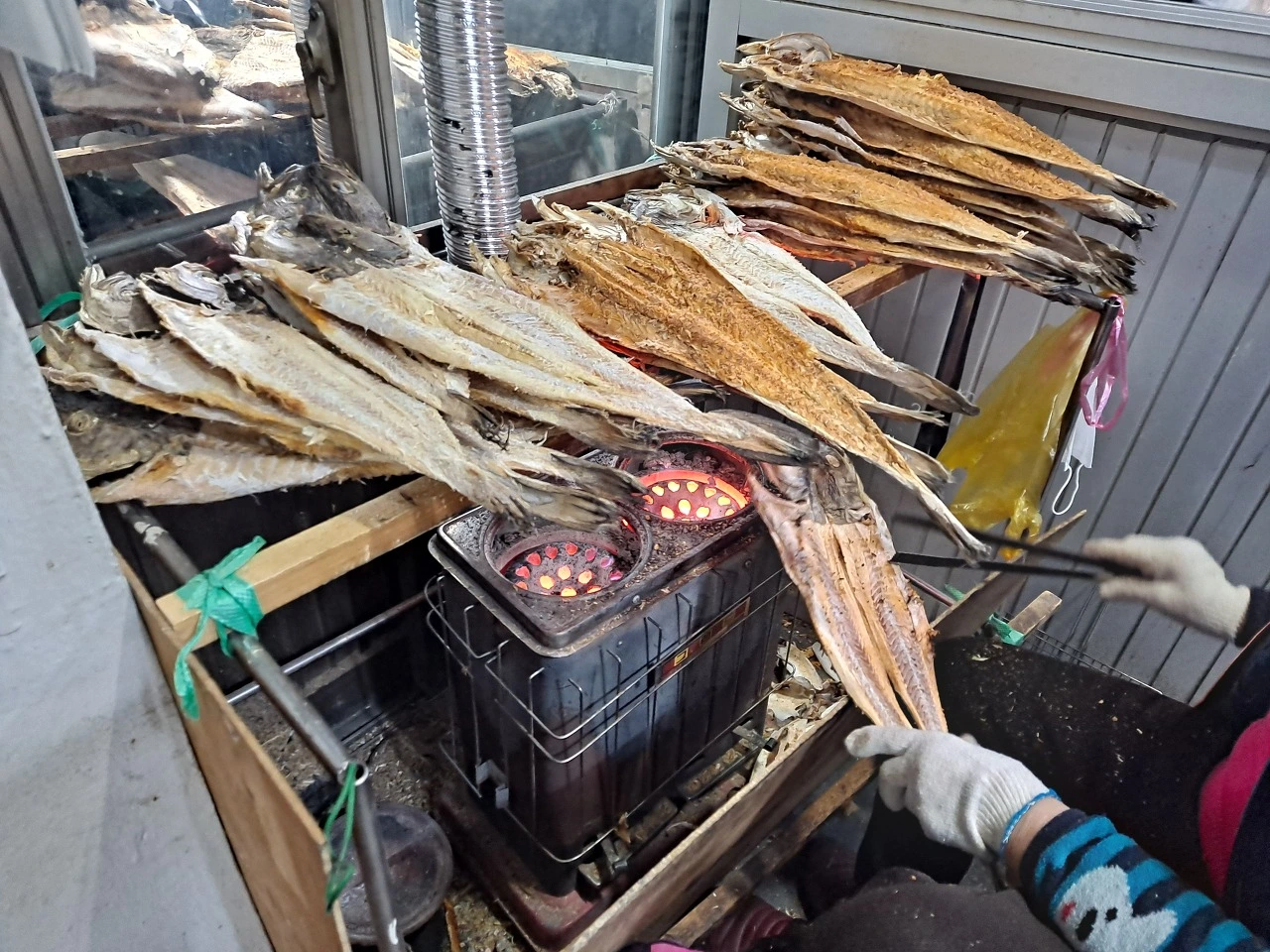 전일수퍼 출입문 뒤쪽에서 주인 할머님이 뜨거운 연탄불에 황태를 굽고 계신다. 오랜 세월 구워낸 장인의 모습이다. 한결 같은 모습이 아름답다. 아름다움은 황태에 노르스름한 색을 입힌다. 가맥의 품격이 시작된 곳이다.