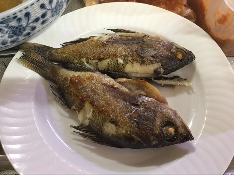 쟁반 자리가 좁아 할머님이 프라이팬에 드시던 볼락구이를 접시에 따로 담으신다. 여수분들이 군평선이구이를 좋아하는 것만큼 통영분들이 사랑하는 볼락구이다. 접시에 담긴 작아 보이지만 살이 꽉 찬 볼락구이를 맛본다. 머리와 껍질은 짭조름하면서도 구수하고 속살은 고슬고슬 고소하다.