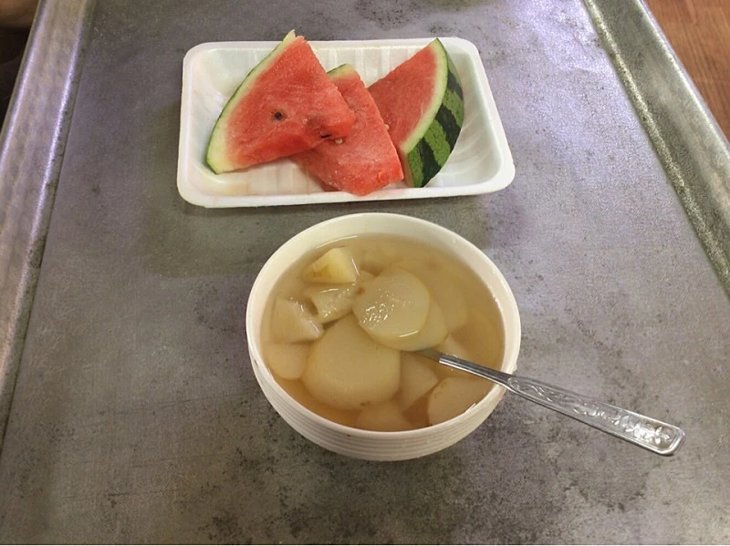 후식으로 수박과 복숭아화채를 내주신다. 수박을 한입 베어 문다. 시원하고 달콤하다.