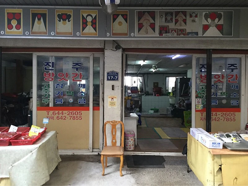 진주떡집·방앗간에서 기다리려고 다시 들렸는데 주인 할머님과 아드님이 식사하고 계신다. 다인밥상에서 먹으려고 산 갈치 젓갈, 자리돔회 나눠 드리려고 하는데 할머님이 같이 밥 한술 뜨라고 하신다.