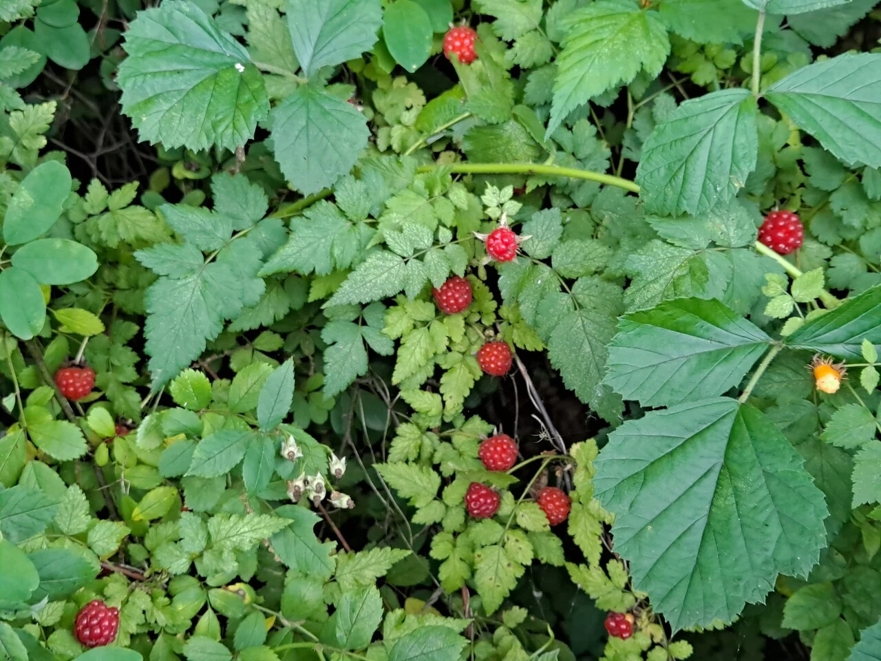 물가 주변, 길가, 숲 가장자리, 비탈 등 곳곳에 산딸기가 보인다. 아무도 건드리지 않은 딸기나무가 대부분이다.