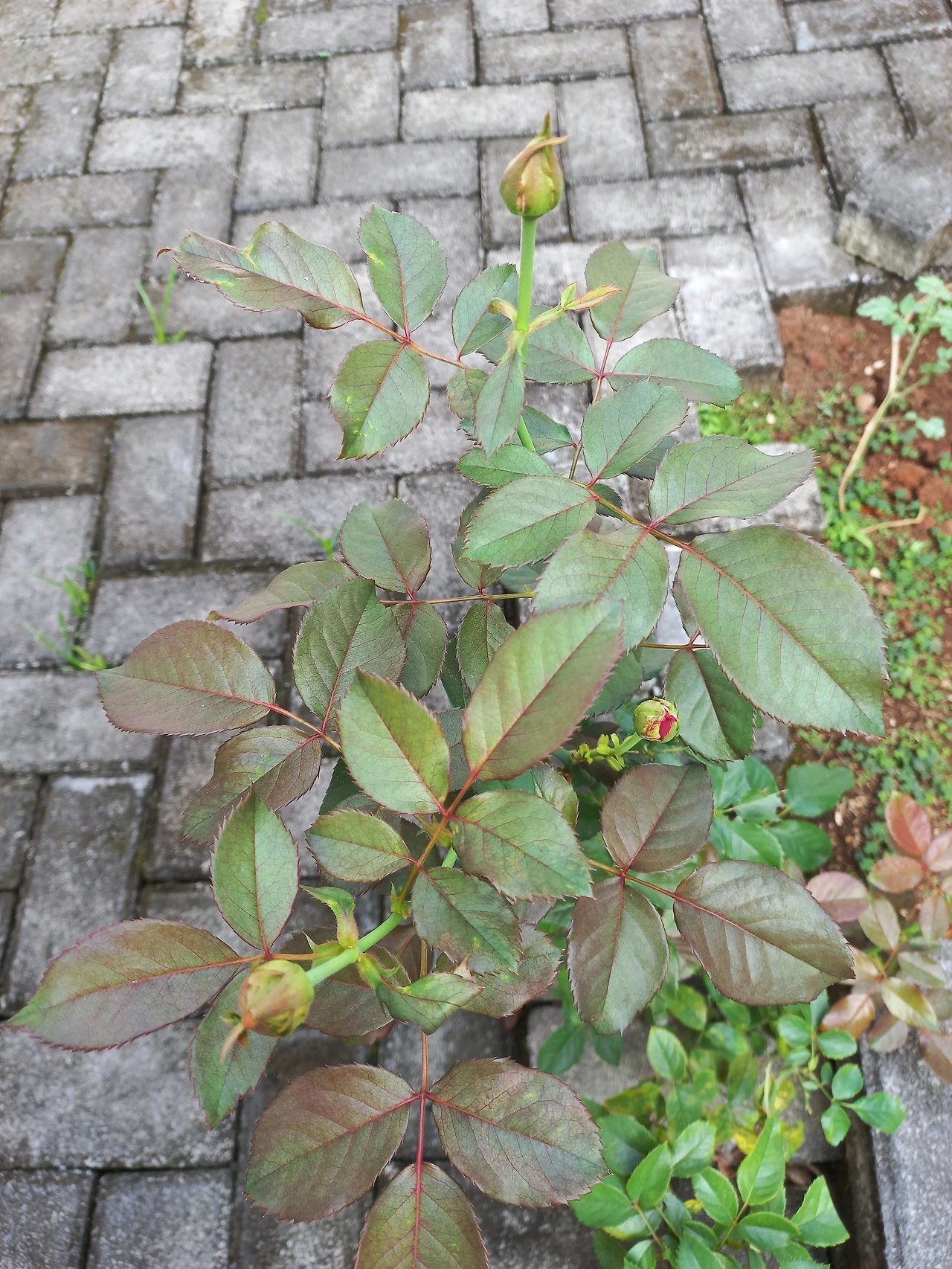 그런데 요 근래 꽃대가 하나 멀대처럼 올라가더니 빨간 장미가 활짝 피며 자태를 맘껏 뽐낸 후 시들어가길래 너무 긴 꽃대 하나를 잘라 주며 자세히 살펴보니 새순이 많이 올라오고 있었다. 비실거리던 모습은 어딜 가고 너무 생생해졌다. 그러더니 꽃봉오리가 세 개나 달렸다. 세상에.. 내가 해준 거에 비해서 너무 활기차게 자라주는 장미한테 미안한 마음이 들었다.