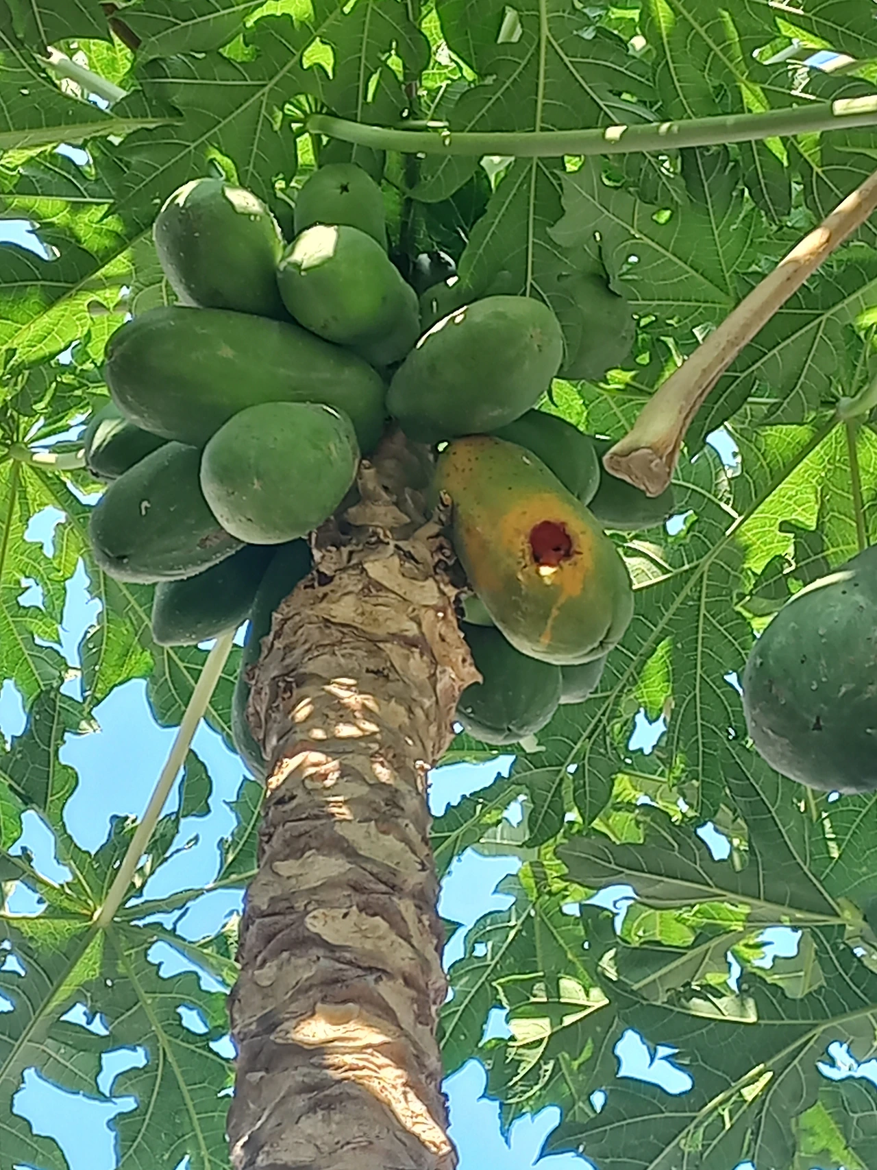 그나저나 너무 높이 달린 파파야는 따기가 참 힘들다. 사다리를 빌려다 따면 되긴 하는데 늘 한 두 개씩 익어가니 매번 그러기도 번거로워 하루 이틀 따기를 미룬다. 그런데 지나가는 새가 익은 파파야를 어떻게 아는지 날아와 뾰족한 부리로 홈을 파서 발갛게 익은 열매를 먹어버린다.