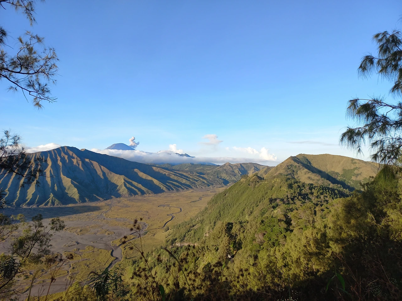 그렇게 우리의 브로모 여행은 시작되었다. 유부초밥, 주먹밥, 볶은 김치를 챙겨 차에 올랐다. 생각보다 가는 도로가 너무 좋다. 주변 환경이 찌까랑과는 사뭇 달랐다. 휴게소 3군데 정도 들리며 6시간 정도 달리는 동안 대부분 직선 코스였고, 양 옆으로 벼농사와 사탕수수가 쫘~악 펼쳐진 게 너무 아름다웠다. 예전에 학창 시절 책에서 배웠던 '김해 대평야'를 내 머릿속에서 그냥 작은 논 한 덩어리 수준으로 격하시켜 버리게 하는 장관이 펼쳐졌다. 저렇게 많은 벼들을 어찌 심었으며 나중 수확은 또 어찌할지 걱정(?)이 될 정도였다. 사탕수수가 하얀 꽃(?)을 피운 모습도 그야말로 장관이었다.