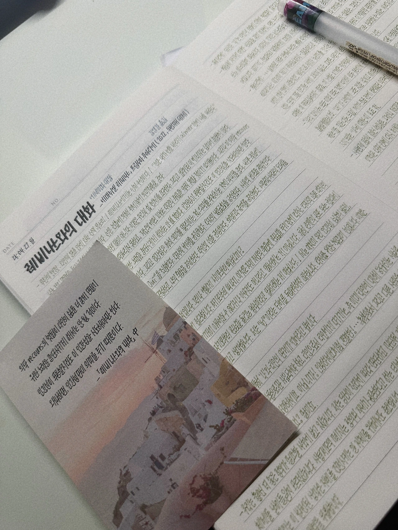 최근에 리추얼(retual)이라는 말을 자주 만나게 된다. 단순한 습관을 넘어서 의미 있는 반복 행위라는 의미의 이 단어. 나는 나의 마음을 위해 어떤 의식을 반복하고 있을까. 나의 리추얼은 한 치의 의심도 없이 필사다. 나는 필사를 통해 마음을 돌본다.