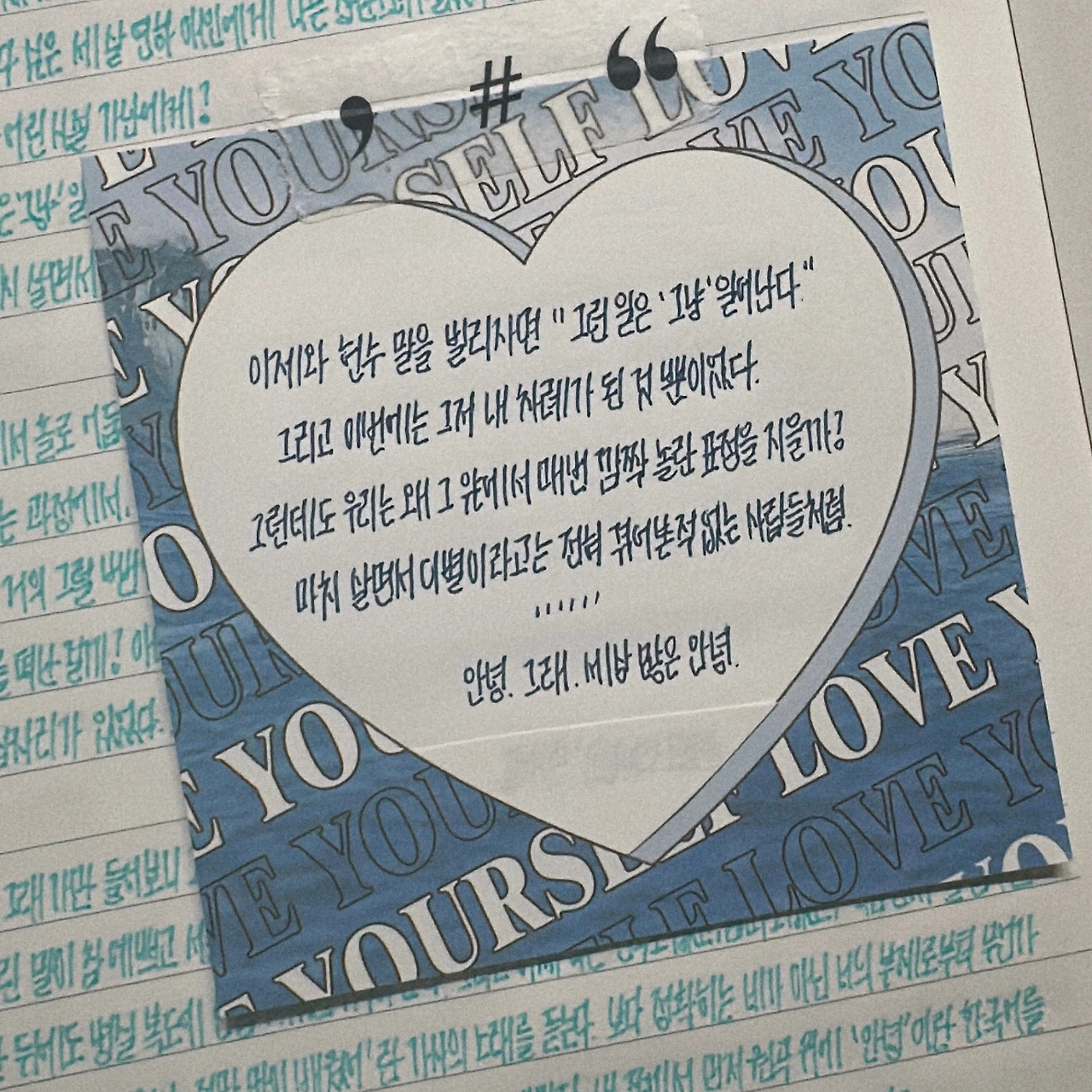 어떤 책들보다 나와 가까운 시간과 공간을 배경으로 한 책들을 읽다 보면 인물과 나 사이를 끊임없이 오고 간다. 그들은 나와 같은 고민을 하고, 나와 같은 선택을 한다. 때론 나와 너무 다른 인물을 만나기도 하지만 그들도 역시 내가 이해해야 하는 사람들이라 생각한다. 또 내가 이전에는 이해할 수 없는 것들을 지금 이해할 수 있는 것과 같은 이유로. 내일의 나의 마음일 수도 있으니 그런 이들 또한 쉽게 지나치지 못한다. 소설 속의 모두는 다 조금씩 다른 나다. 그래서 나는 그들이 깨달음을 얻는 순간들을 그냥 지나치지 못한다. 그래서 찰칵. 사진을 찍고 그대로 내 마음에 베껴쓴다. 지금의 나는 조금 혼란스럽고 많이 부족하지만 그들의 배움을 따라 배우다보면. 그들이 나아가는 것처럼 조금씩 나아가게 될거라는 믿음으로.