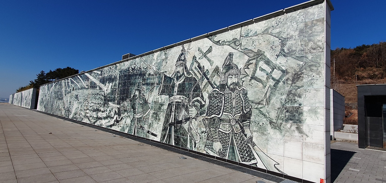 호국 광장으로 나오자, 한쪽 벽면을 가득 채운 거대한 벽화가 눈길을 끌었다. 4천여 장의 분청 도자기에 노량해전의 장면을 그려낸 초대형 벽화인 ‘순국의 벽’이었다. 그 앞에는 장군의 동상이 위엄있게 서 있었다. 단단히 쥔 검과 흔들림 없는 눈빛은 조국을 지키겠다는 결읭 그 자체였고, 그 앞에 서자 마음 깊숙이 묵직한 경외감이 일었다.