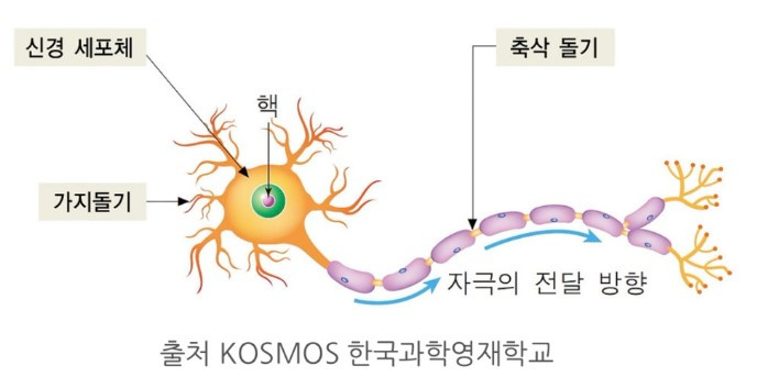 위의 사진은 우리의 뇌를 이루고 있는 신경세포, 뉴런이다. 학교 과학 시간에 배운 동물세포, 식물세포의 모양과는 조금 다르다. 끈처럼 생긴 무언가를 주렁주렁 달고있는 이 모습이 마치 밧줄을 닮았다고 하여 밧줄을 뜻하는 라틴어 ‘뉴런(neuron)‘이라는 이름을 가지게 되었다고 한다. 그렇다면 뉴런 세포는 왜 밧줄같은 긴 구조로 되어 있을까?