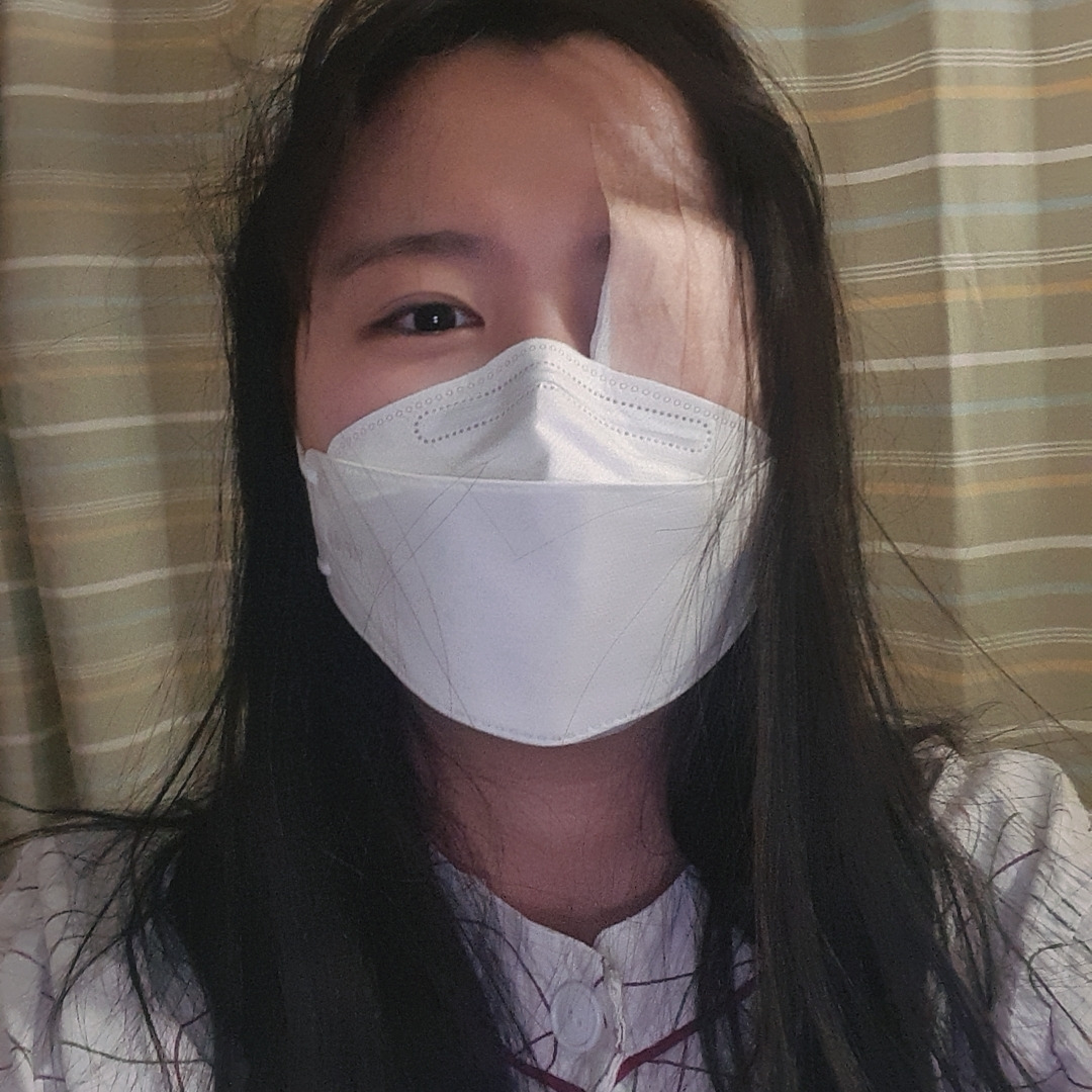 한쪽 눈을 가리면 좀 더 잘 보여서, 간호사에게 부탁해 오른쪽 눈에 거즈를 붙였다. 혼자가 되자 왠지 나 혼자서도 잘 해낼 수 있을 거라는 오기가 생겼다. 최대한 씩씩하게 버텨야지 하는 생각에 구멍 난 잠옷을 벗어 환자복으로 깨끗하게 갈아입고, 이 와중에 세수와 양치도 했다.(입원생활에 필요한 물품은 친구가 응급실 대기 시간 중 잠시 집에 다녀와 챙겨주었다.) 그리고는 친구와 가족들을 안심시키려 최대한 밝은 표정으로 셀카도 찍어 보냈다.