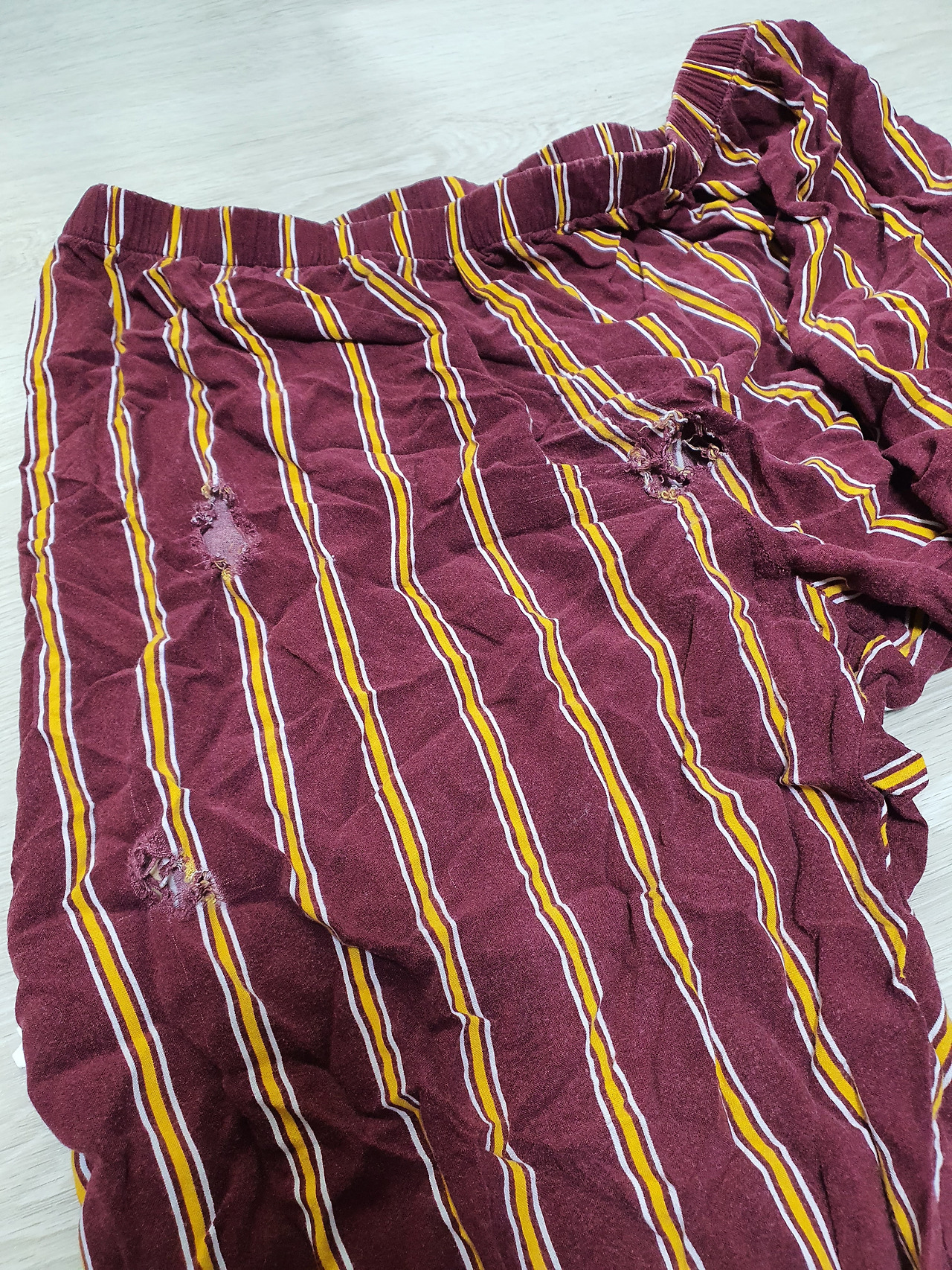 바로 이 바지다. 구멍이 난 위치도 하필...