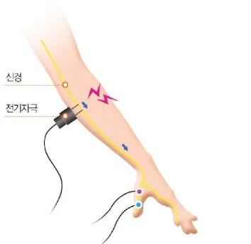 위 사진처럼 몸 곳곳에 전극을 연결하고, 일정 부분에 전기를 흘려 신경의 반응을 보는 검사였다.(초음파 같은 게 아니었어ㅠㅠ) 그래도 나름 물리치료 경험도 있고(?) 단지 그 정도의 찌릿함이겠거니 하고 검사를 시작한 나는 첫 번째 전기 자극부터 곧 내 생각이 틀렸음을 깨달았다. 물리치료는 쨉도 안되게 강한 전기자극이 전해져서 그 자체만으로도 바늘에 찔리는 듯한 고통이 오는 데다가, 그 전기 자극이 일으킨 신경반응 때문에 발이나 팔이 펄떡펄떡 날뛰었다. 아파서 윽윽대긴 했지만 한편으론 신기하긴 했다. 발가락에 자극을 주는 게 아니라 발목 어딘가에 전기를 주면, 발가락이 지멋대로 움직였다. 손도 마찬가지였다. 팔 어딘가에 전기자극을 주면 손이 지멋대로 움직였다. 팔의 이 부분이 몇 번째 손가락의 신경과 연결되어있구나 하고 바로 알 수 있었다. 흥미롭지만 동시에 꽤나 고통스러운 과학 시간이었다.