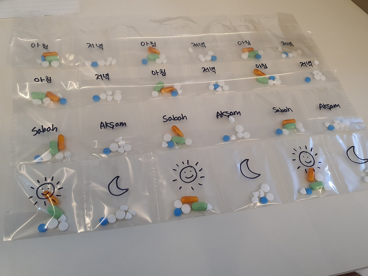 그러고 나서는 섞이지 않게 조심조심, 때마다 먹을 약을 골라 넣으면 된다.