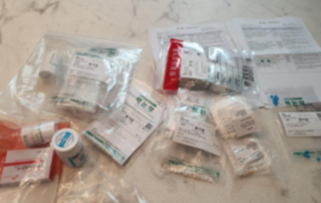 퇴원 후 내가 받아온 약들이다. 약봉지가 저렇게나 많다. 사진이 흐리게 보이는 건 여러분의 눈이 침침한 게 아니라, 사방팔방에 내 개인정보가 쓰여 있어 일일이 지우기 귀찮았던 내가 사진 전체에 블러를 먹인 탓이다. 원래 복용하던 신경과 약에, 소화기내과 약과 정신적인 약물까지 추가되는 바람에 진짜 너무너무 약이 많고 헷갈렸다. 게다가 아침 점심 저녁이 아니라, 아침 기상 후와 자기 전 약도 추가되었다. 그냥 하루죙일 약만 먹고 사는 거다.(배부르겠어 아주)