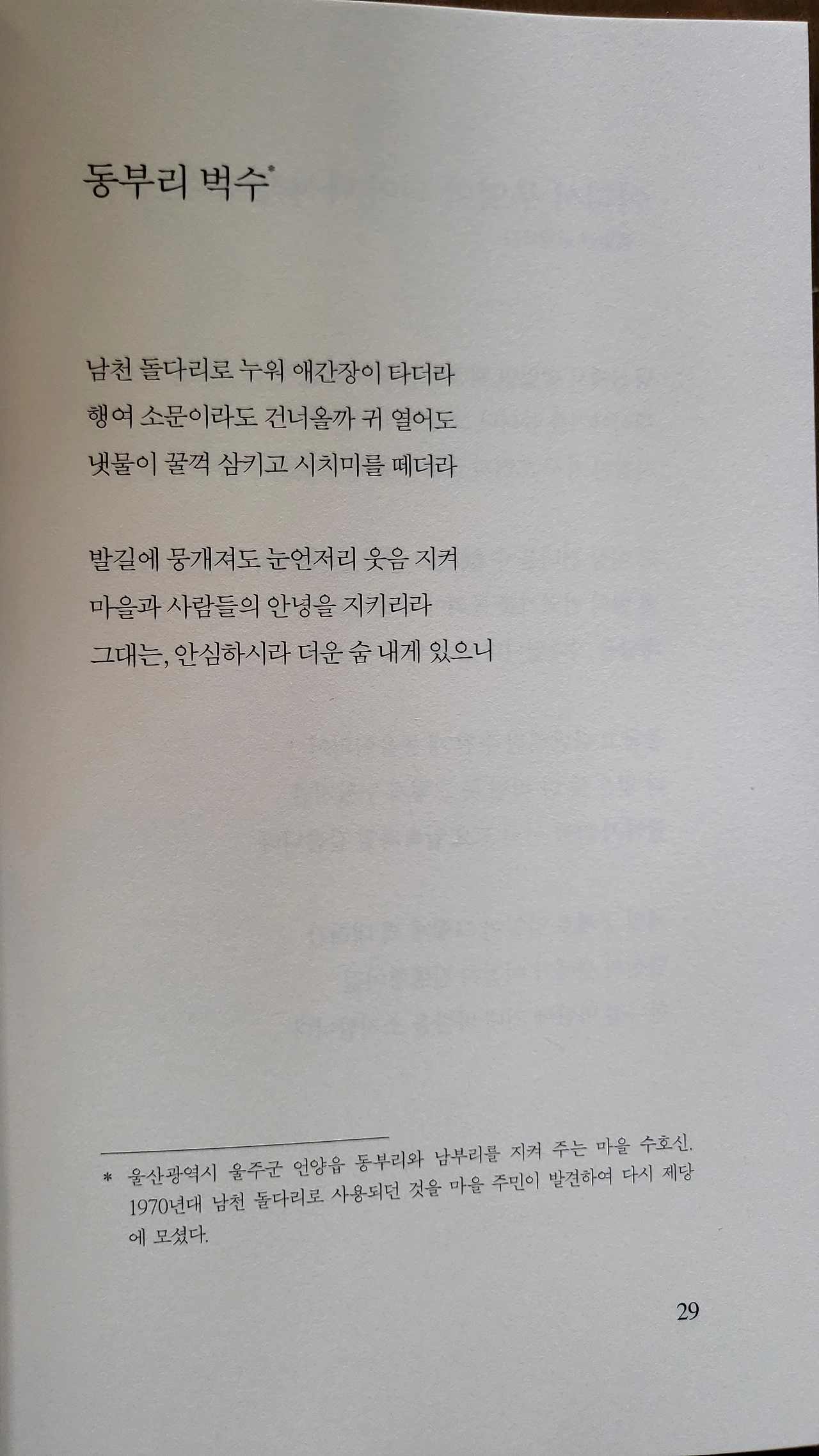 우주로 인공위성을 보내는 첨단 과학의 시대를 살지만 때로 무엇인가에 기대야 살 수 있는 우리 곁에, 뭉개진 얼굴로 서 있는 동부리 벅수가 있습니다.