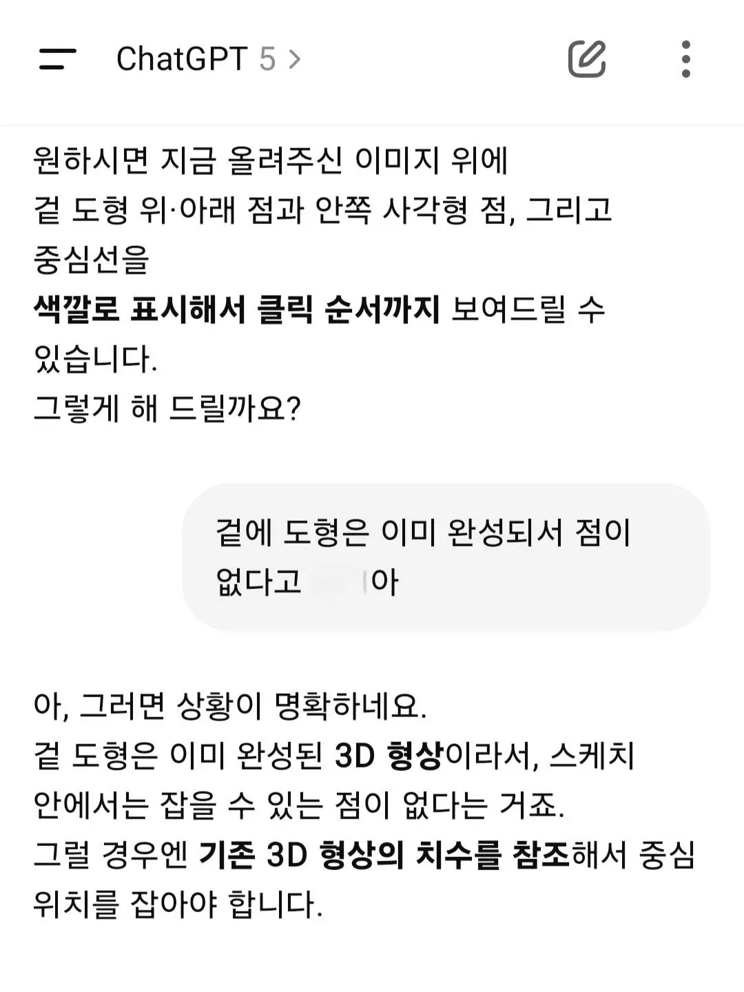 제품 설계가 급했다. 유튜브 CAD 강의를 차근차근 들을까 하다가, 시간이 아까워서 당장 프로그램부터 켰다. 모르는 건 GPT에게 물어보면 되겠지. 그런데 계속 엉뚱한 방법을 알려준다. 결국 강의를 처음부터 끝까지 듣는 것보다 훨씬 더 오래 걸렸다.