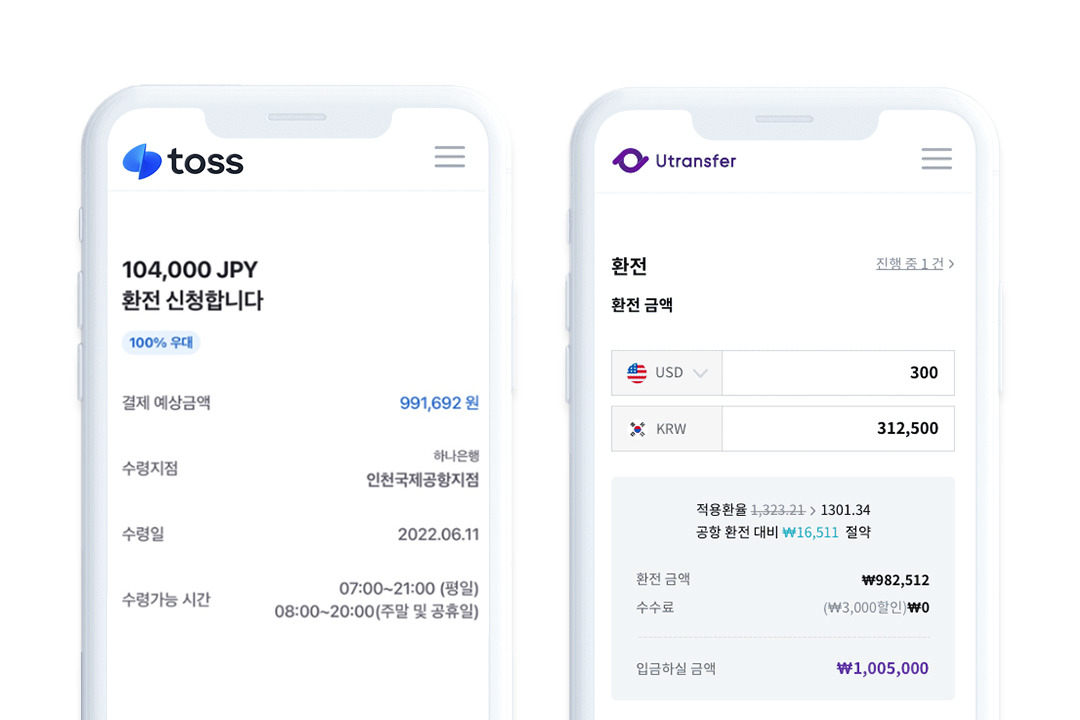 일본 여행을 가기 위해서 엔화 환전은 필수다! 요즘엔 굳이 은행에 직접 갈 필요 없이, 은행 앱으로 환전을 신청하면 인천공항에서 받을 수 있다. 여러분 모두 공항이 수수료가 제일 비싸다는 생각을 하겠지만 토스 앱을 이용하면 수수료가 0원이라고 한다. 신한은행과 농협은행 등의 경우 환전수수료가 1.75% 정도 되는 반면, 토스는 최대 100만 원까지 환전수수료 없이 우대환율 100% 적용이 가능하다. 그리고 유트랜스퍼라는 앱에서도 수수료 없이 환전 가능하고, CU편의점에 방문해서 수령할 수 있다! 광고 아니고 직접 알아본 사실이니 편하게 이용해 보자.