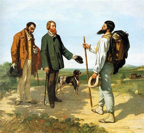 <쿠르베 씨 안녕하십니까>라고 제목을 붙인 그림에서 화가는 허름한 차림이지만 당당한 모습으로