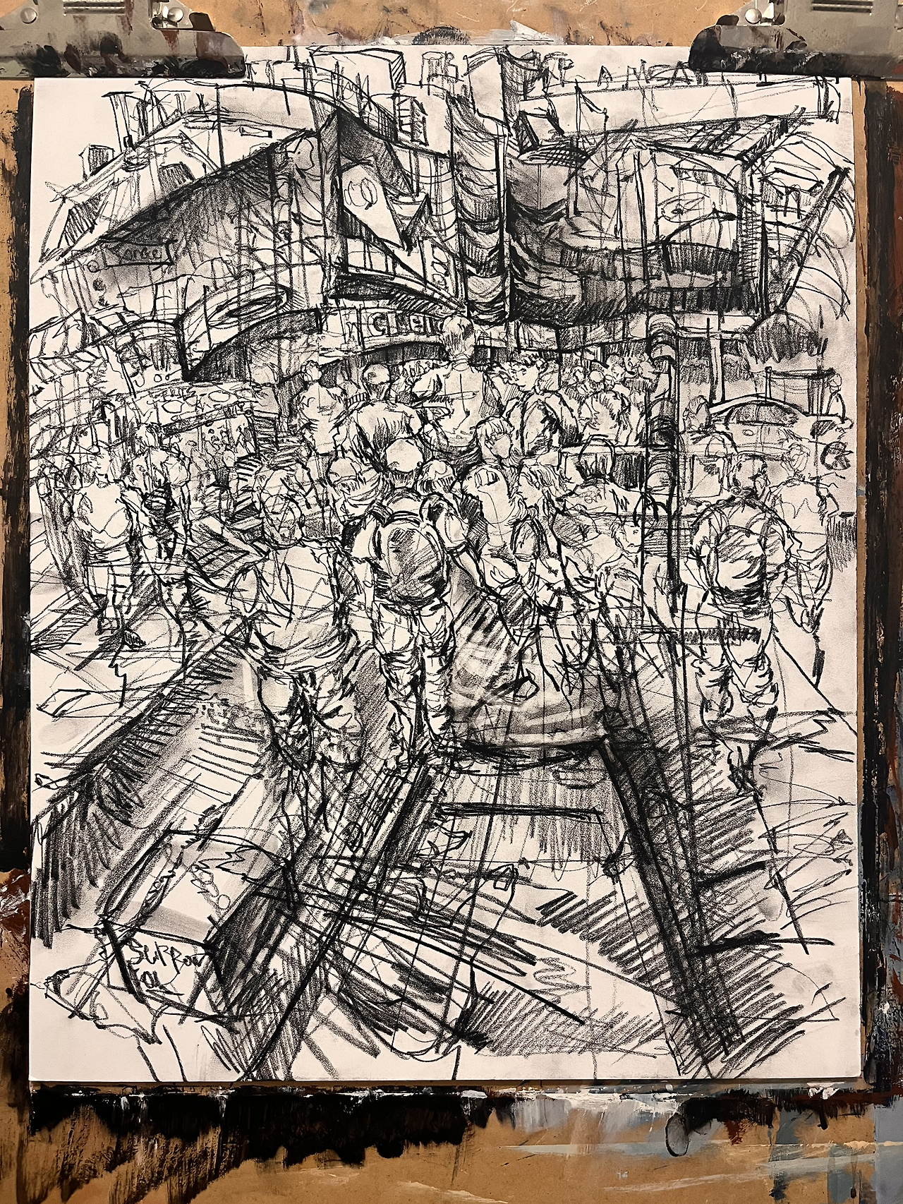 다만 이 시점에서 “ 난 사람들에게 멋진 그림을 보여줘야지 “ “이 그림을 예쁘게 완성하고 가야지” 가 아닌, “ 사람들 앞에서 그림을 집중해서 그려봐야지” 가 되면 조금 더 부담 없이 시도를 할 수 있다.