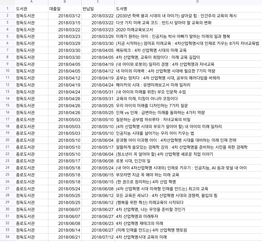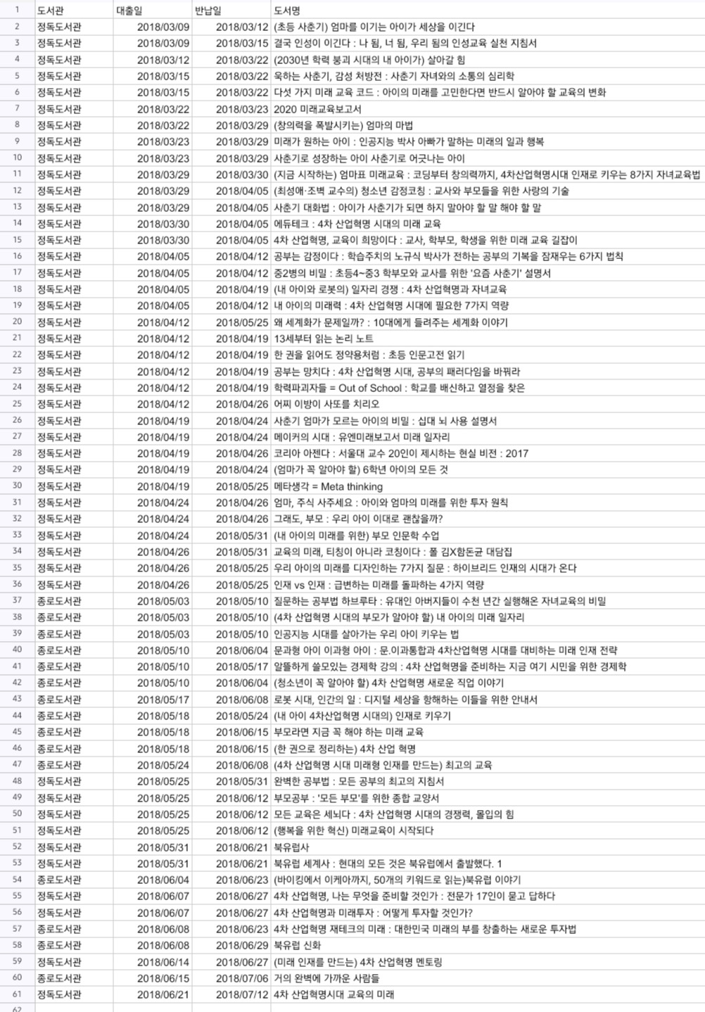 2018년 3월부터 4개월 동안 정독도서관과 종로도서관을 오가며 무려 60권의 책을 파고들었습니다. 그중 오로지 아들의 미래 교육을 위해 정독한 책만 33권이었습니다.