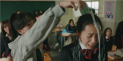 남자아이 한 명이 다가와 머리카락을 잡아당긴 후 도망간다. 하나가 어두운 교실로 들어가자 물을 뿌린다.