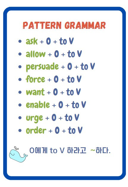 문법 하면 뭔가 암튼 거부감이 드는 게 정상일 텐데, 사실 그냥 패턴으로 알아두는 게 문제 해결이나 영작에는 도움이 된답니다.
