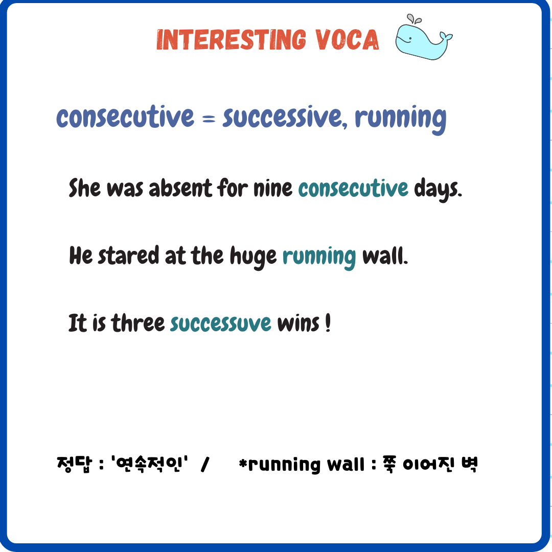 자, 그다음 문장은 한번 해석해 보시고, consecutive의 뜻을 유추해 봅시다.
