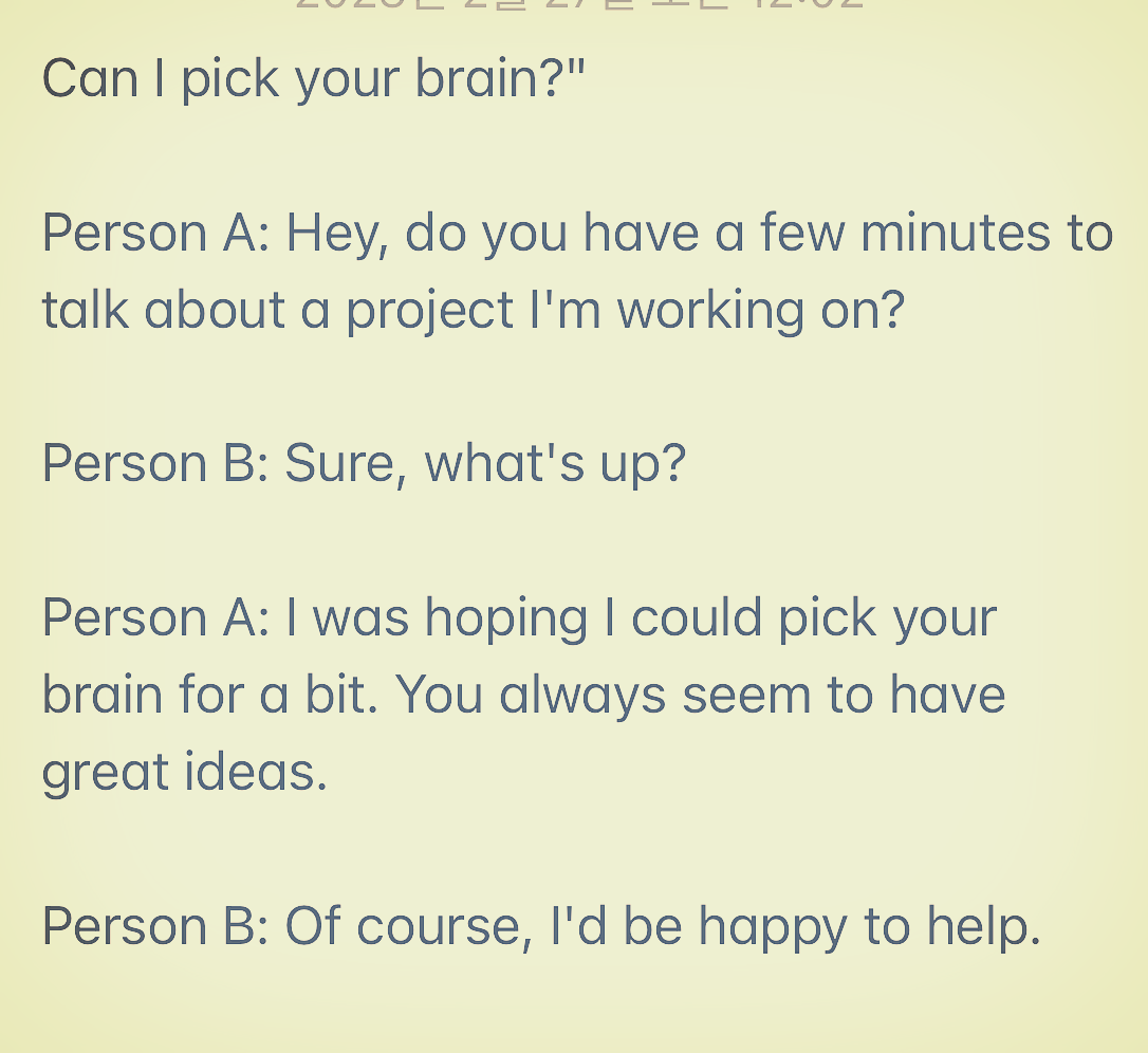 ‘can I pick your brain?‘이 딱 그 표현이랍니다!