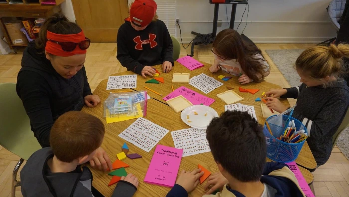 정월대보름에는 쥐불놀이, 고싸움, 달집 태우기 등의 놀이를 해야 하지만 교실이라는 한정적인 공간, 1시간이라는 부족한 시간 속에서 바깥 놀이를 하는 것은 불가능했다. 미국 초등학생들과 함께 하기에는 실내에서 하기 쉬운 우리나라의 전통놀이를 경험하는 것이 좋겠다 생각했다. 이번에도 함께 도와주시는 한국 선생님들의 힘을 빌려 5개의 코너를 설정하고 소모둠 별로 돌아가며 놀이를 체험해 보는 것으로 수업을 구상했다.
