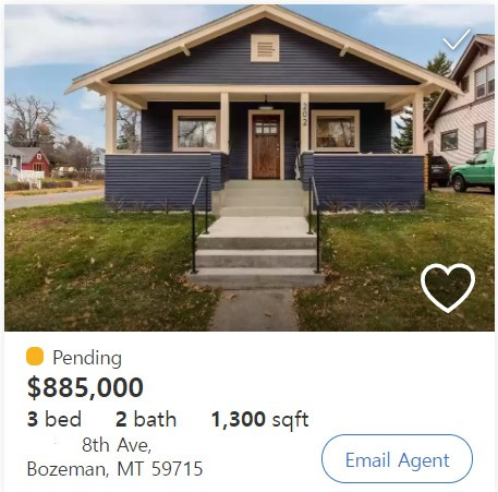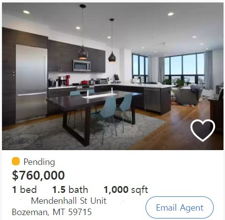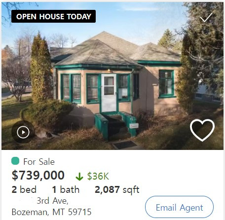 2021년 12월 현재, 몬태나 보즈만에서 거래되고 있는 집값 (https://www.realtor.com에서 갈무리)