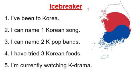 그리고 학생들이 한국에 대해 얼마나 알고 있는지 아이스 브레이커 시간을 가졌다. 다섯 가지 질문에 해당하는 학생들에게 한국 가이드 북 한 권씩 증정을 하니 조금 더 분위기가 화기애애해졌다. 수업의 주요 내용으로는 세 가지를 정했다. 사실 교수님께서는 한 시간이 그리 길지 않으므로 한국 경제만 다루어도 된다고 했지만, 나는 꼭 한국 문화와 한국어에 대한 내용도 넣고 싶었다. 그리하여 수업내용의 전체 주제는 3가지(한국의 경제, 문화, 언어)로 구성이 되었고, 경제와 문화는 '어떻게'에 대해서, 한국어는 '왜'에 대해서 설명을 해주었다.