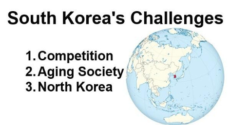 마지막 부분에서는 한국 사회가 풀어야 할 과제를 세 가지로 제시했다. 한국은 분명 정말 멋지고 훌륭하고 눈 부신 성장과 발전을 거듭해 왔지만 모든 사회가 그렇듯 어두운 점도 이야기해 주어야 수업의 내용이 더 풍부해지고 균형이 맞을 거라 생각했다. 이 또한 세 가지로 나의 생각을 정리했다. 첫째, 지나친 경쟁 사회, 그것이 주는 좋은 점도 있지만 그로 인해 자살률(Suicide Rate)이 높은 나라, 둘째, 저출산으로 인해 빠르게 나이가 들고 있는 사회(Aging Society), 셋째, 현재 전 세계 유일의 분단국가로 북한과의 관계를 언젠가는 꼭 풀어가야 한다고 이야기를 해 주었다.